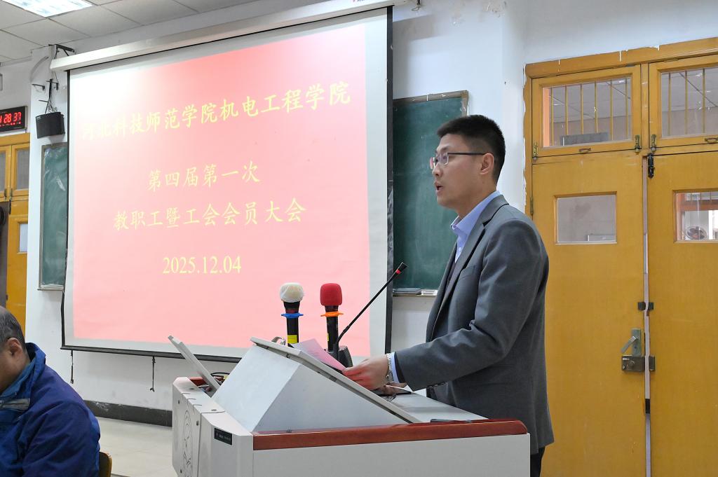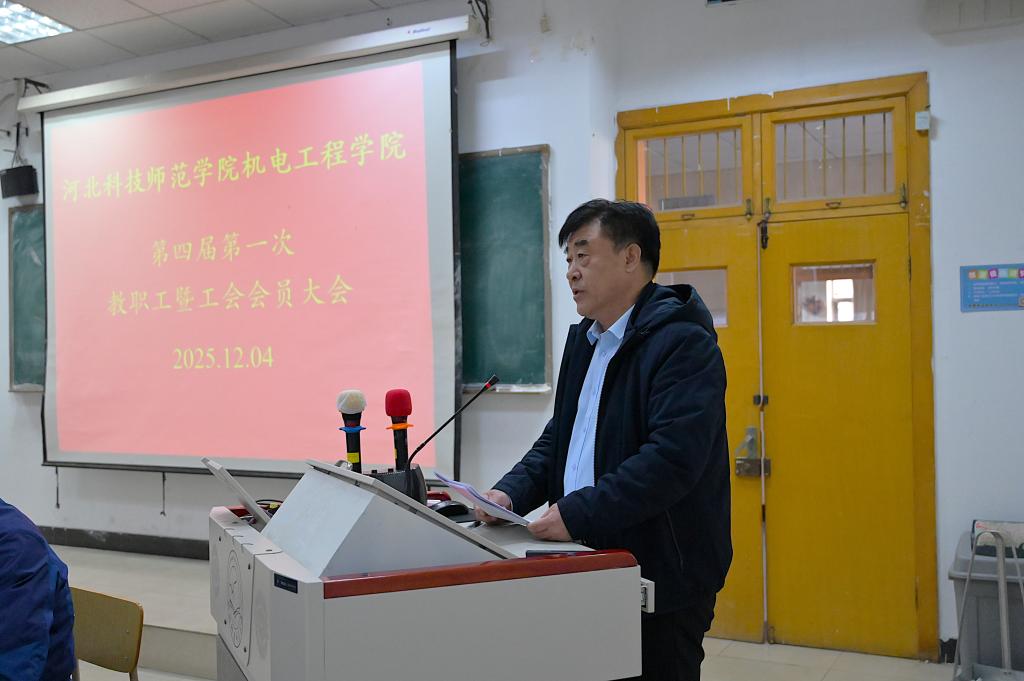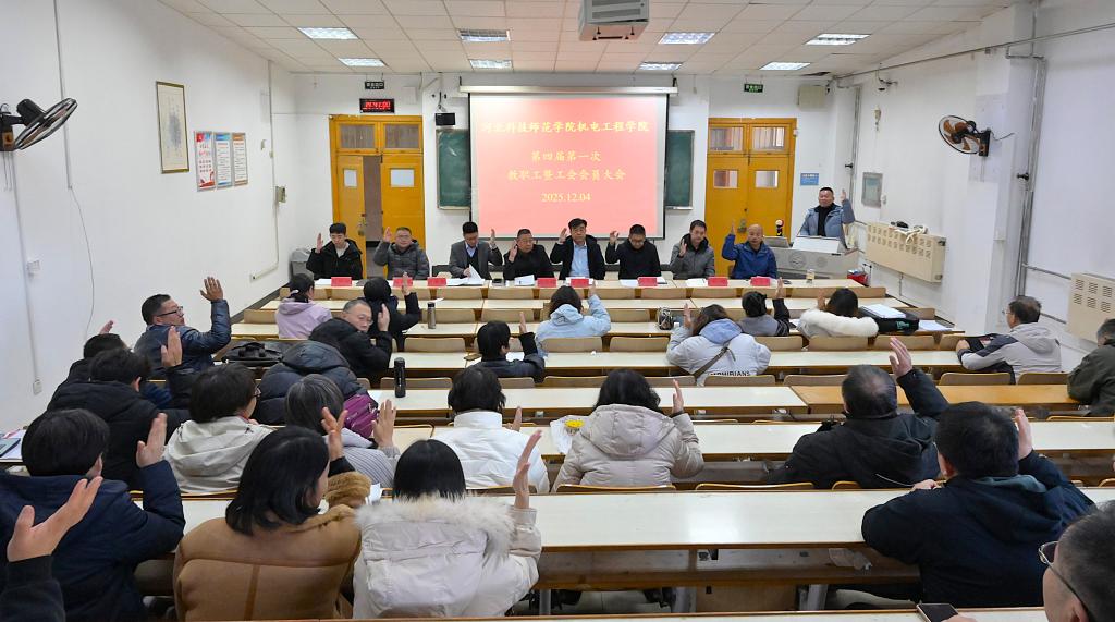 2025年12月4日下午2时,机电工程学院第四届第一次教职工暨工会会员大会于昌黎校区1B104隆重举行。学院党政领导班子与全体教职工齐聚一堂,共绘发展蓝图。