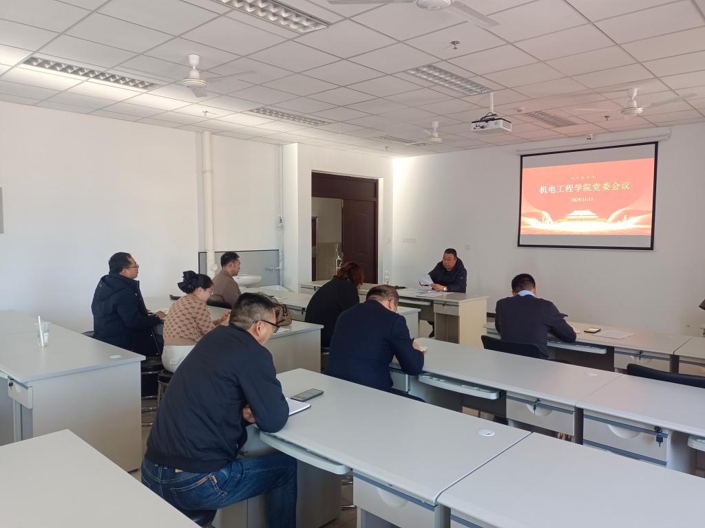 2025年11月13日,机电工程学院党委在开发区校区B204召开党委会议,专题学习习近平总书记在亚太经合组织工商领导人峰会上的书面演讲及在APEC第三十二次领导人非正式会议上的重要讲话精神。学院领导班子成员、党委委员、各党支部书记参加此次学习。