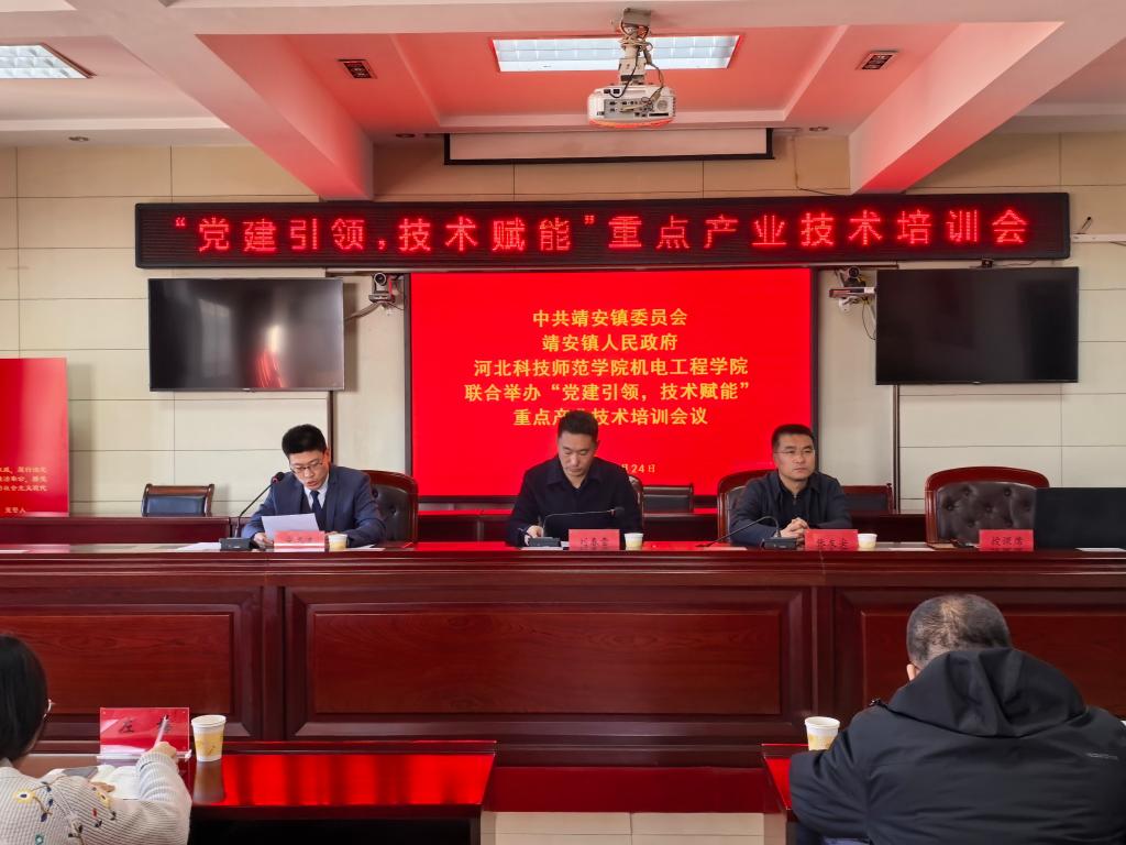 2025年12月24日,为深入贯彻落实党的二十届四中全会精神,科学谋划“十五五”时期高质量发展新路径。河北科技师范学院机电工程学院与昌黎县靖安镇党委联合举办“党建引领·技术赋能”重点产业技术培训会。机电工程学院党委副书记宋冬冬,副院长林红举,靖安镇党委书记刘春雷,党委副书记、镇长张友安等出席活动,河北安丰钢铁集团有限公司等二十余家镇域重点企业的负责人和技术骨干参加培训。