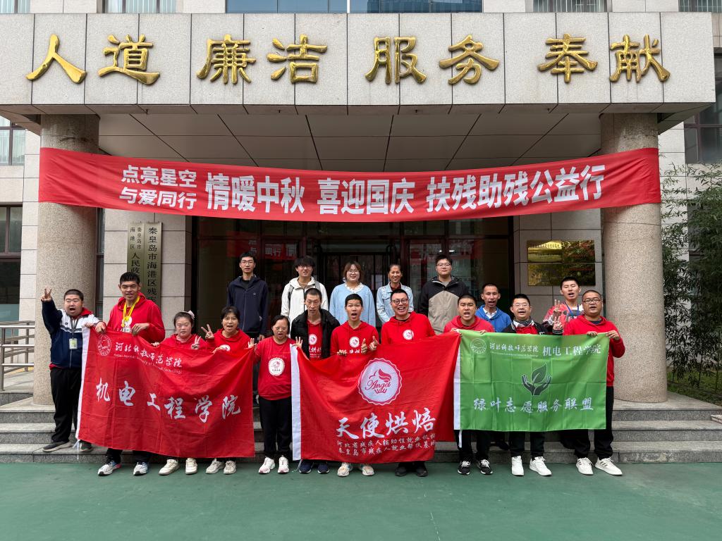 2025年10月15日,机电工程学院绿叶志愿服务联盟社团在海港区残疾人联合会建立了就业帮扶基地,开展扶残助残志愿服务活动,学工办老师、社团同学、残联工作人员共计20余人参加活动。