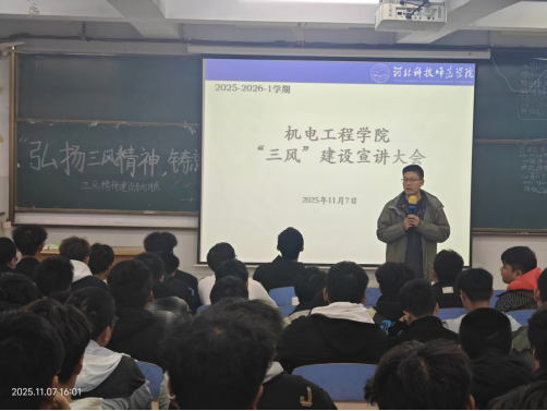 机电工程学院,为加强“三风”建设,提升学生素养,于2025年11月7日下午,在开发区校区Z118举办了“学风”建设专题讲座,共计200多学生参加。