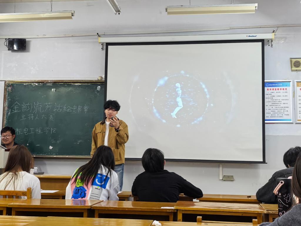 2026年4月13日,机电工程学院在开发区Z404举办“金韵流芳,话绘锦章” 金话筒主持人大赛。本次大赛吸引了学院各专业的 50余名青年学生参加。